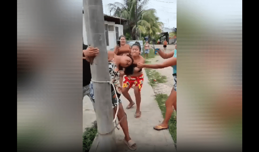 Girl Gets Tied To Pole And Violated By The Whole Hood For Breaking Into People Houses