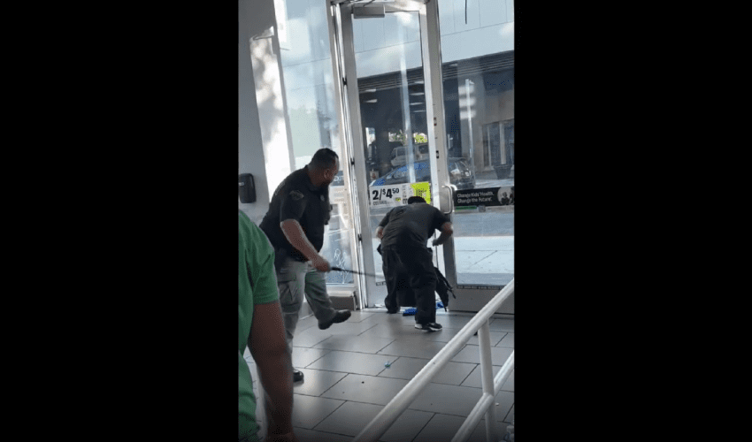Security Guard Legs Went Out After He Tried To Hit A Thief For Stealing